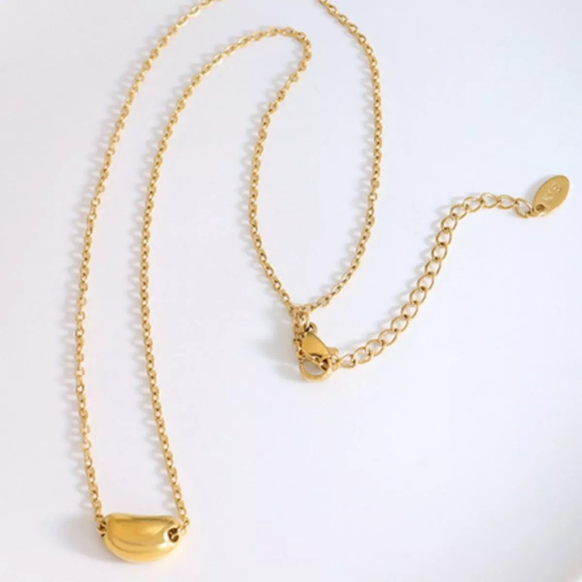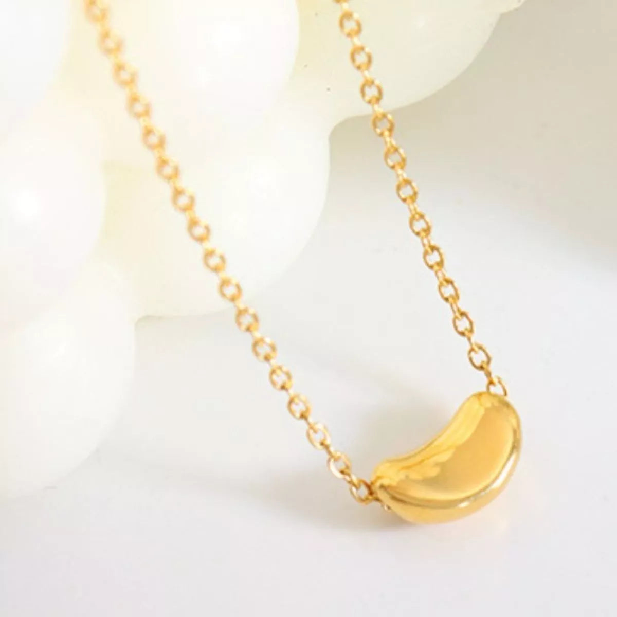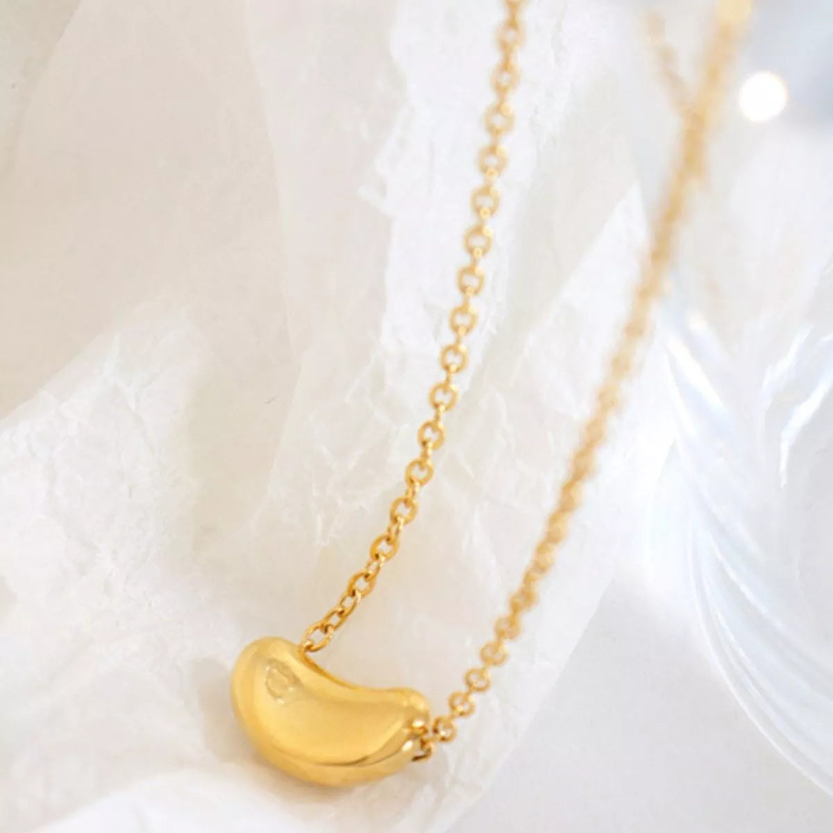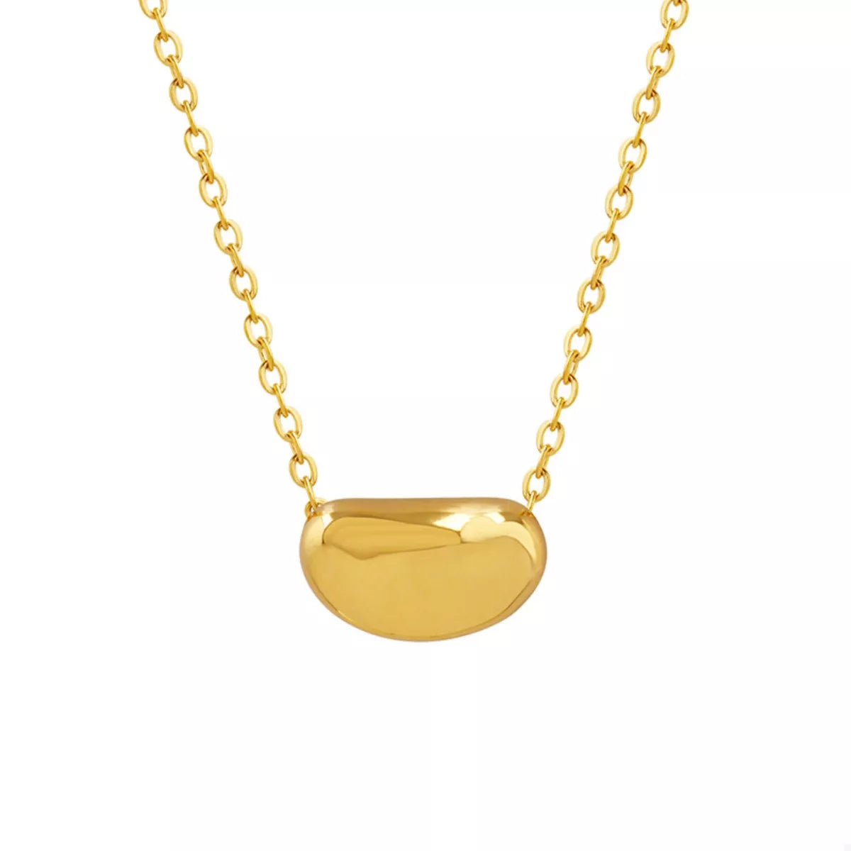Introducing the NYLD Glamour Collection by NEWYORKLISTED, featuring the exquisite 18K Gold-Plated Bean Pendant Necklace. This stunning piece is crafted from high-quality titanium steel, ensuring durability and elegance.