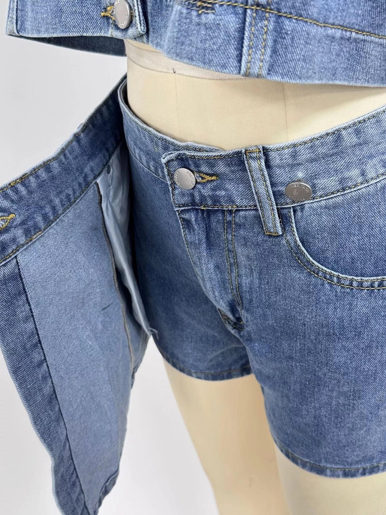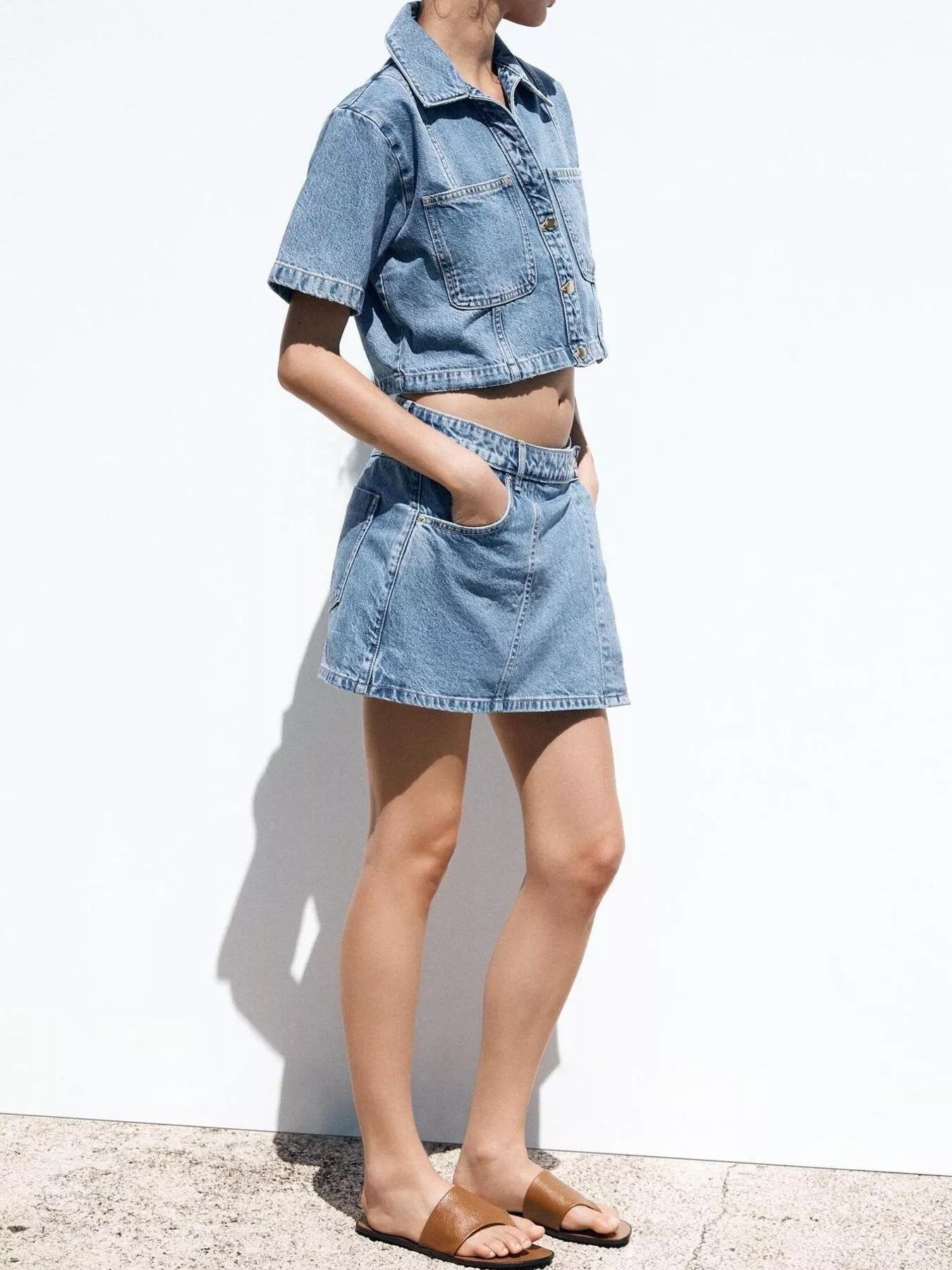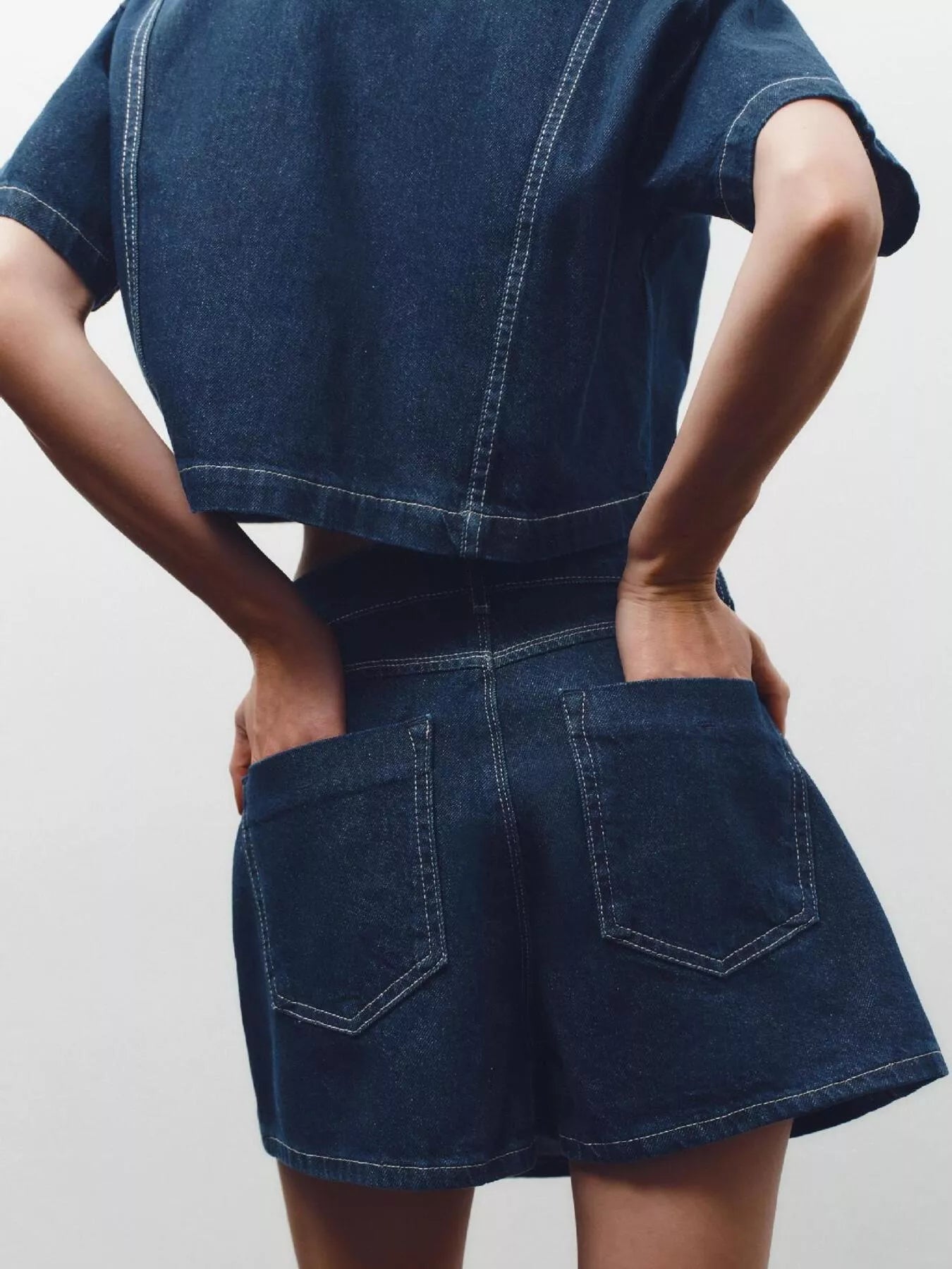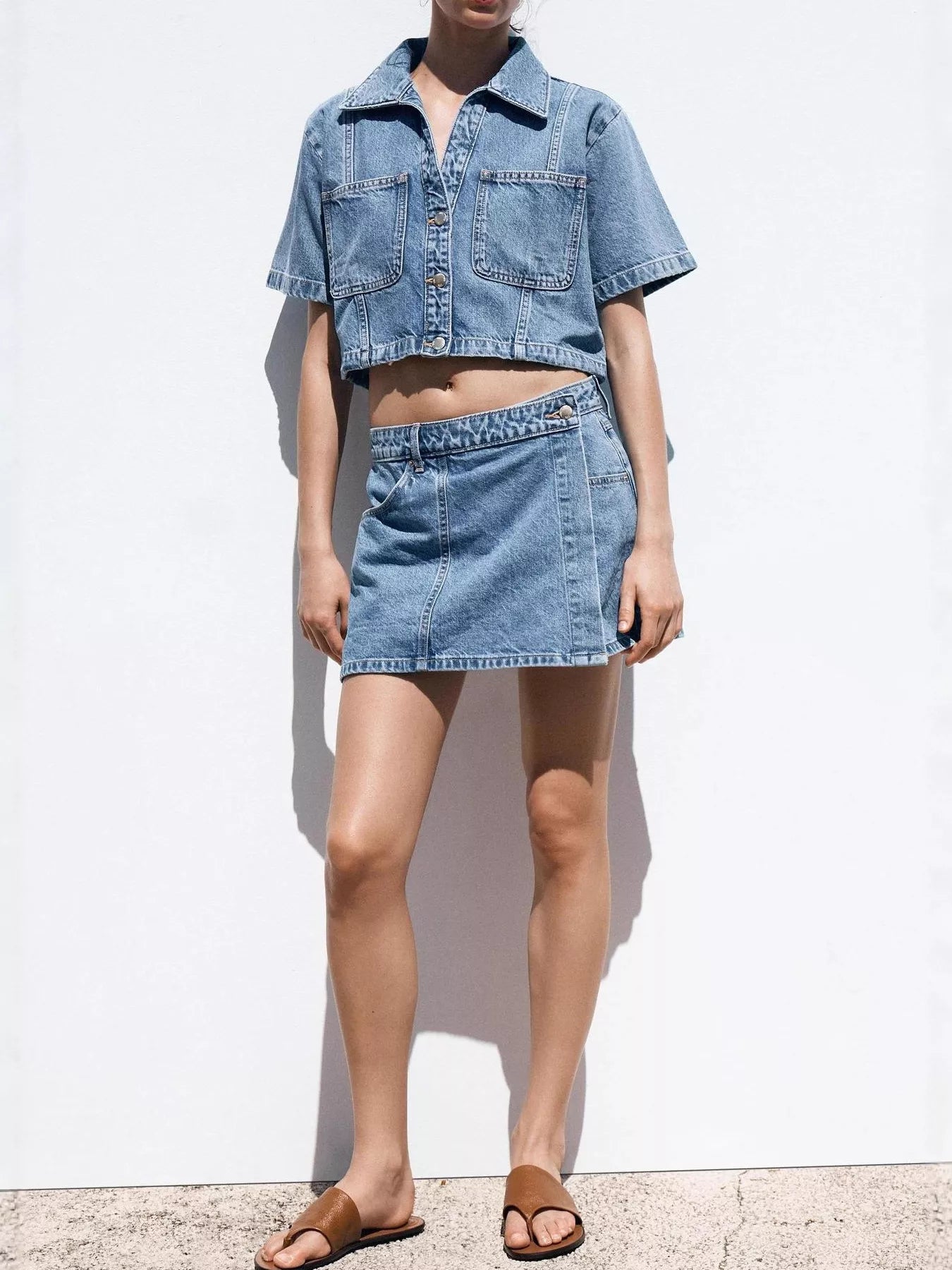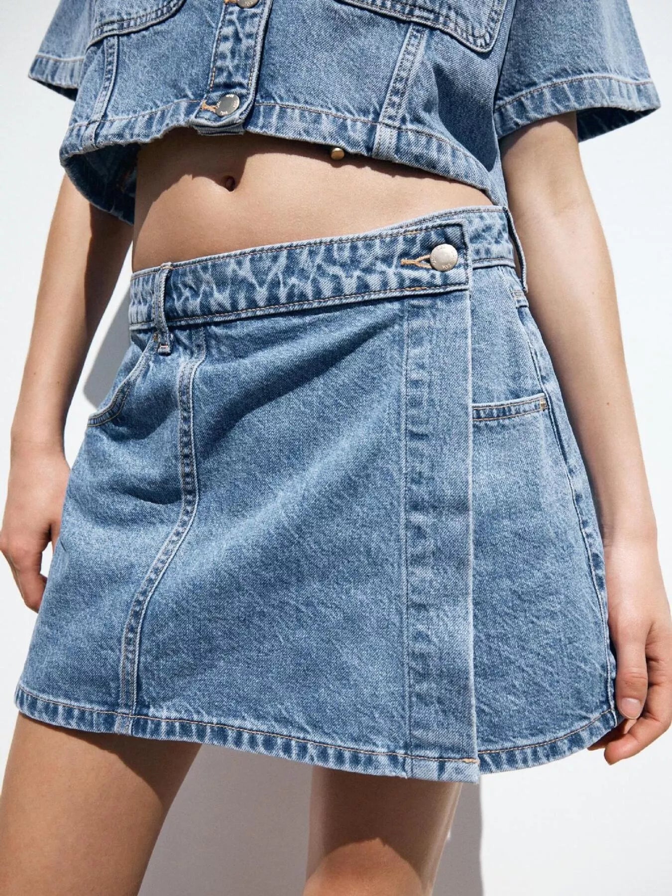 ✔ Modern denim two-piece outfit
