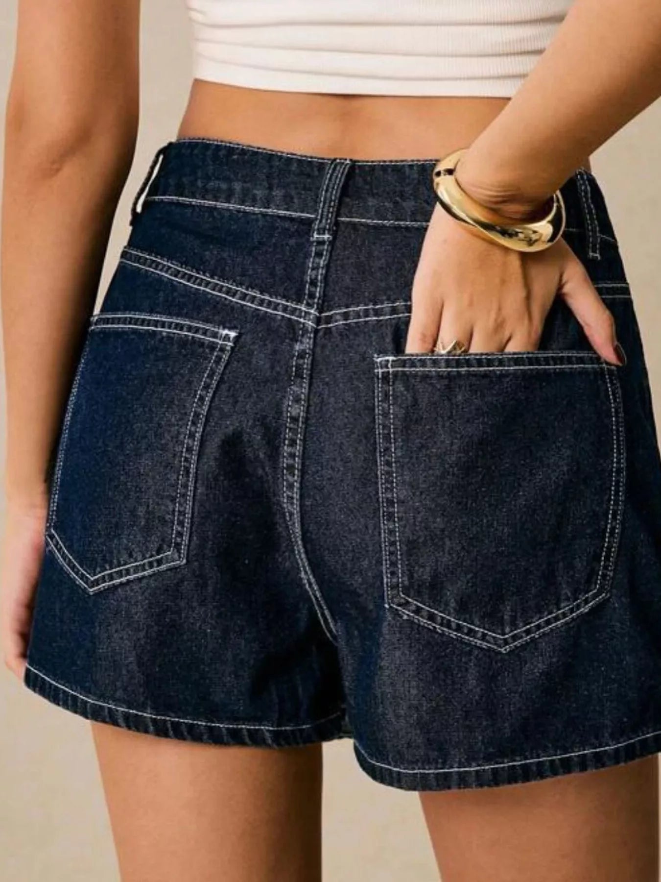 The denim texture brings a timeless, effortlessly cool aesthetic that pairs beautifully with white sneakers, sandals, ankle boots, or statement jewelry.