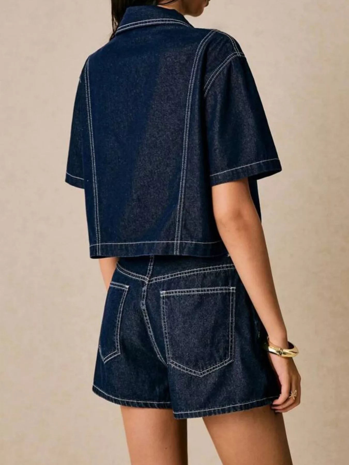 Button-Up Short Sleeve Denim Top & Skort Set – Modern Two-Piece Casual Summer Outfit