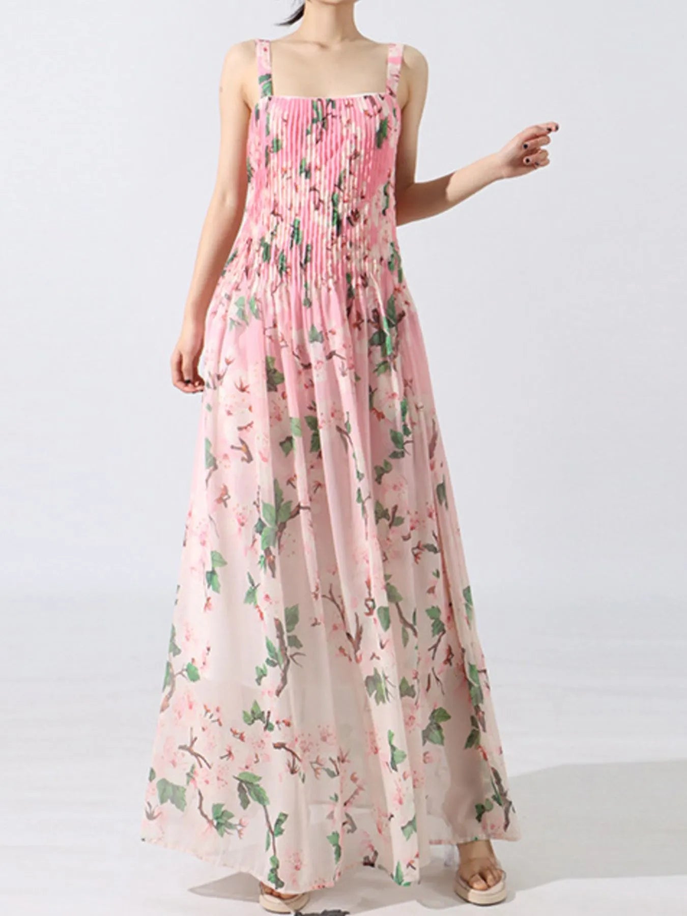 NEWYORKLISTED RUNWAY STYLE: Velvet Floral Lantern Sleeve Floral Print Pleated Maxi Dress