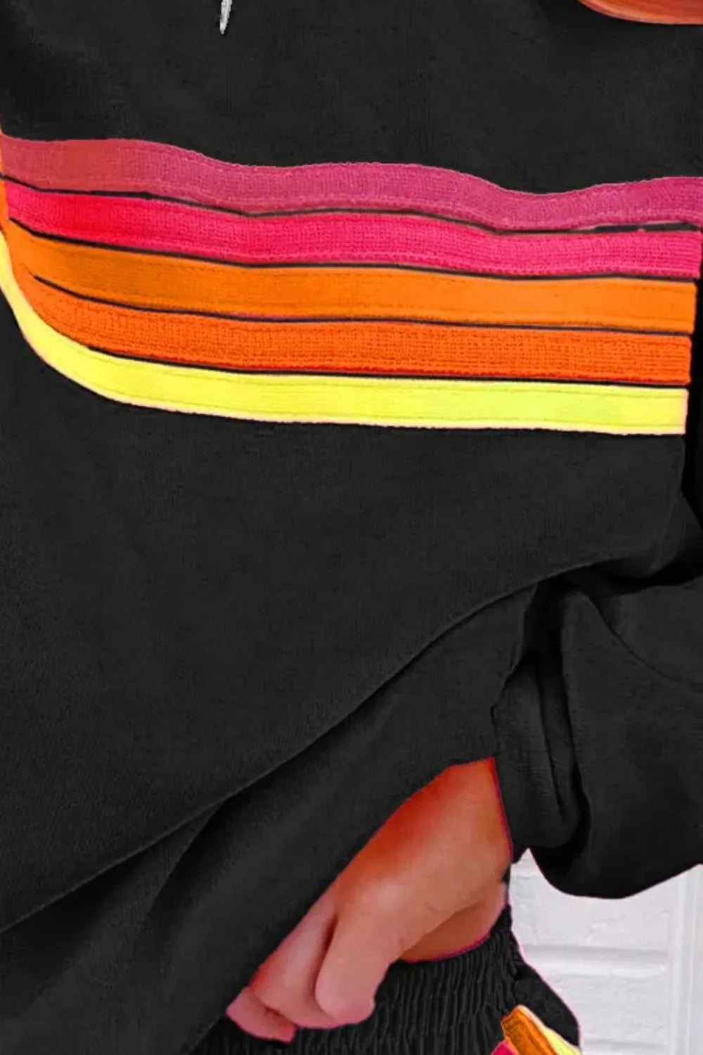 NEWYORKLISTED Comfort Collection: Contrast Striped Round Neck Top and Shorts Set
