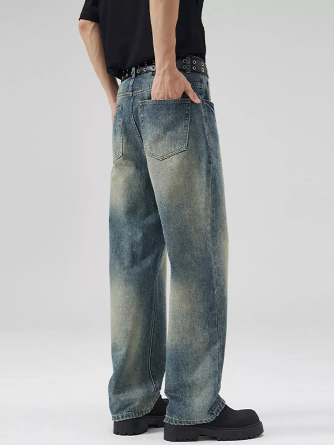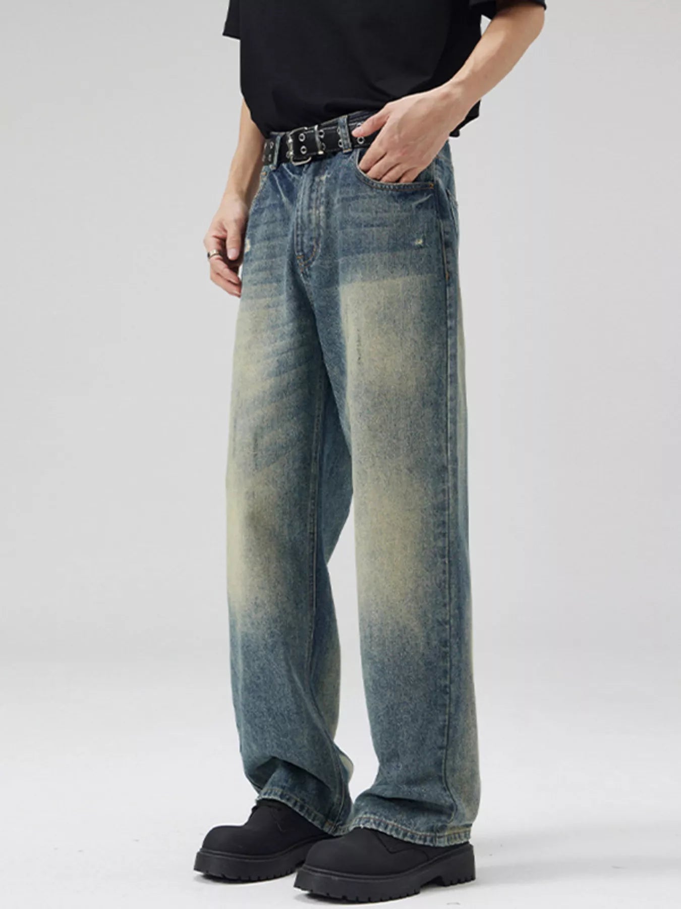 NEWYORKLISTED ATLAS MEN's COLLECTION: Men's Full Size Vintage Wash Wide Leg Jeans
