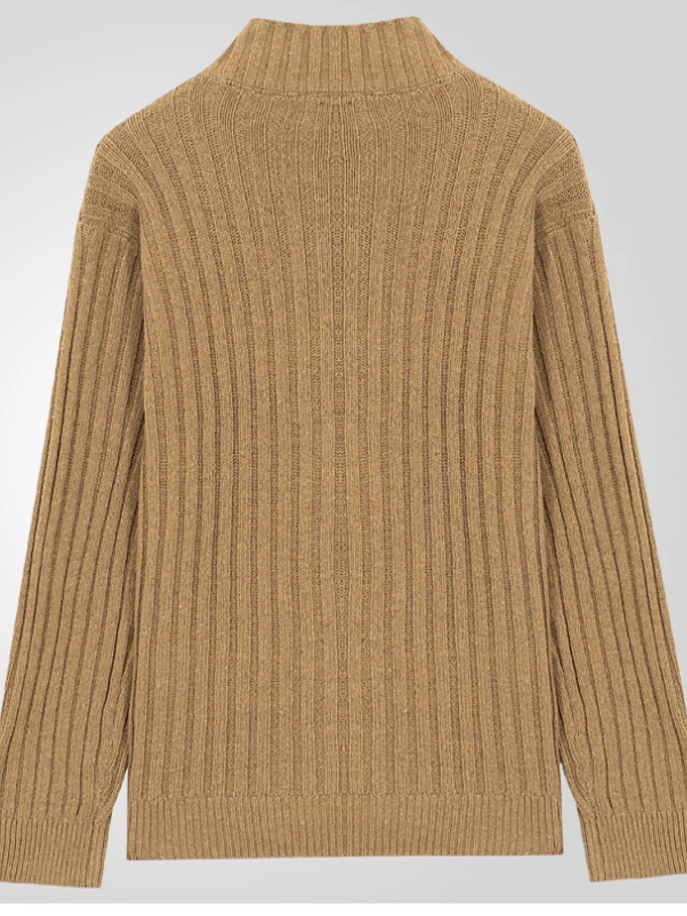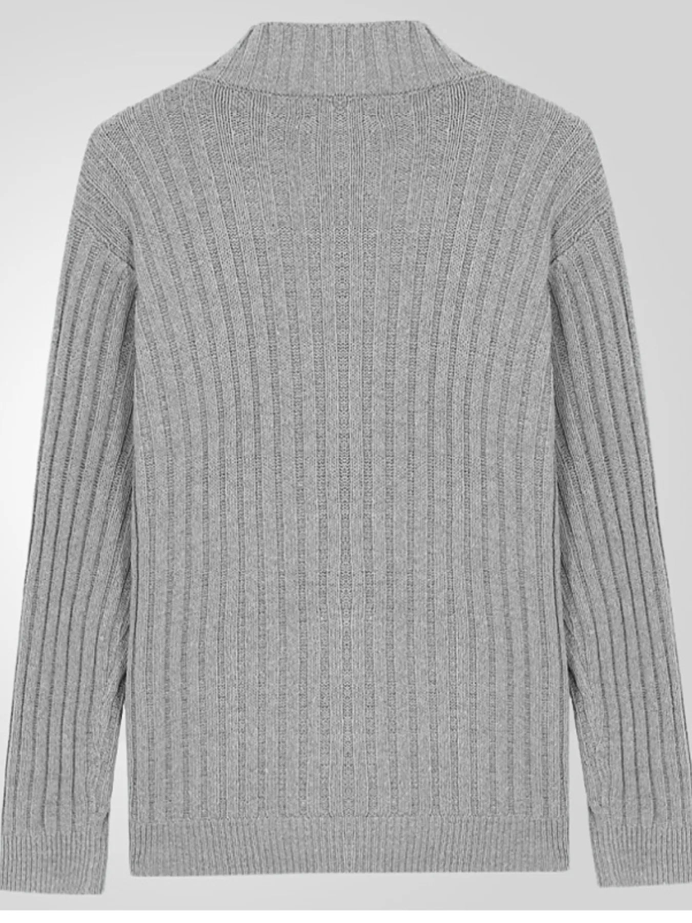 Classic cable-knit design with ribbed texture for a tailored, masculine look