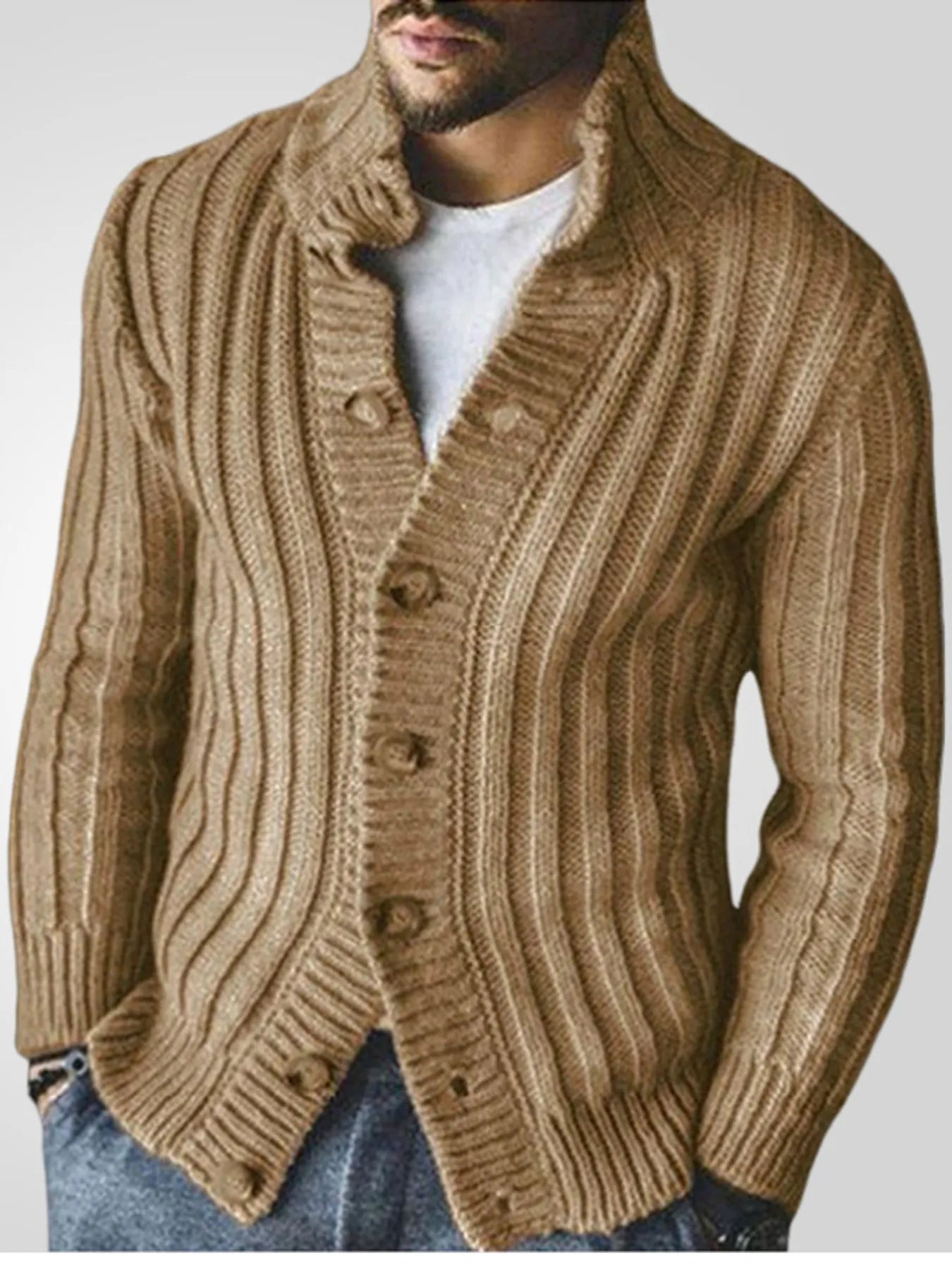 NEWYORKLISTED ATLAS MEN'S COLLECTION: Classic Ribbed Cable-Knit Button-Up Cardigan