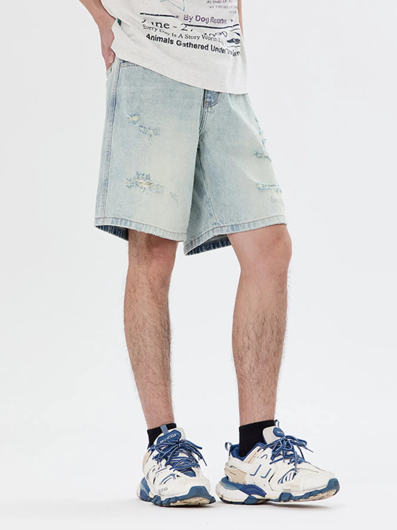 NEWYORKLISTED ATLAS MEN's COLLECTION: Men's Distressed Loose Fit Denim Shorts