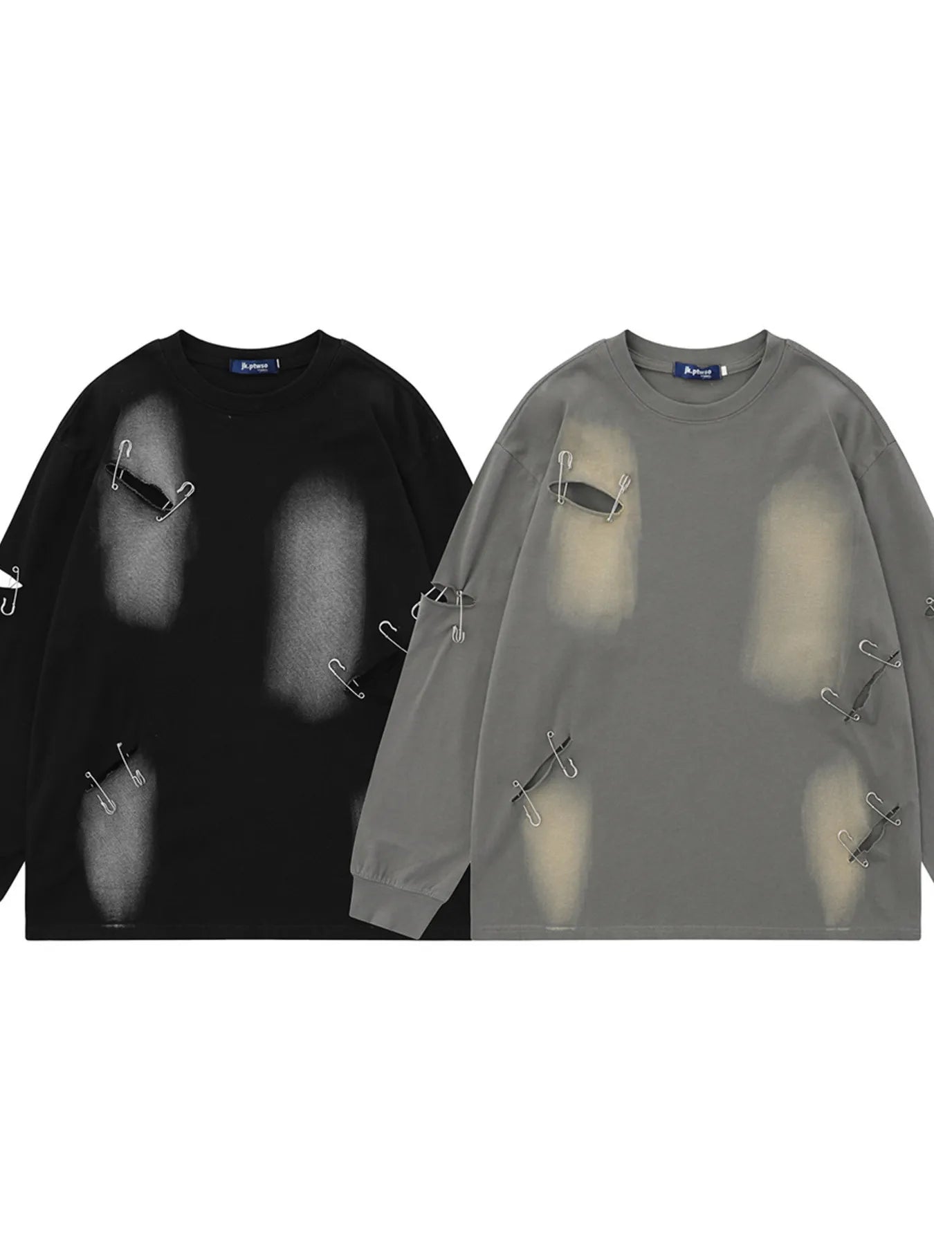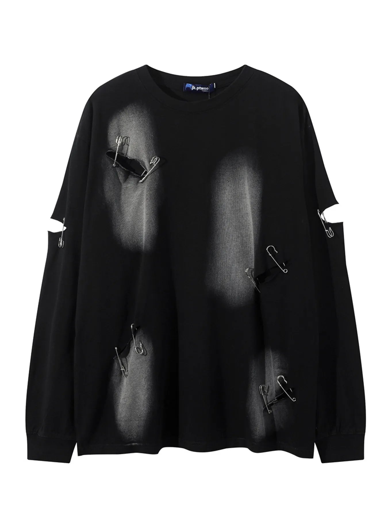 NEWYORKLISTED ATLAS MEN's COLLECTION: Men's Distressed Round Neck Long Sleeve T-Shirt