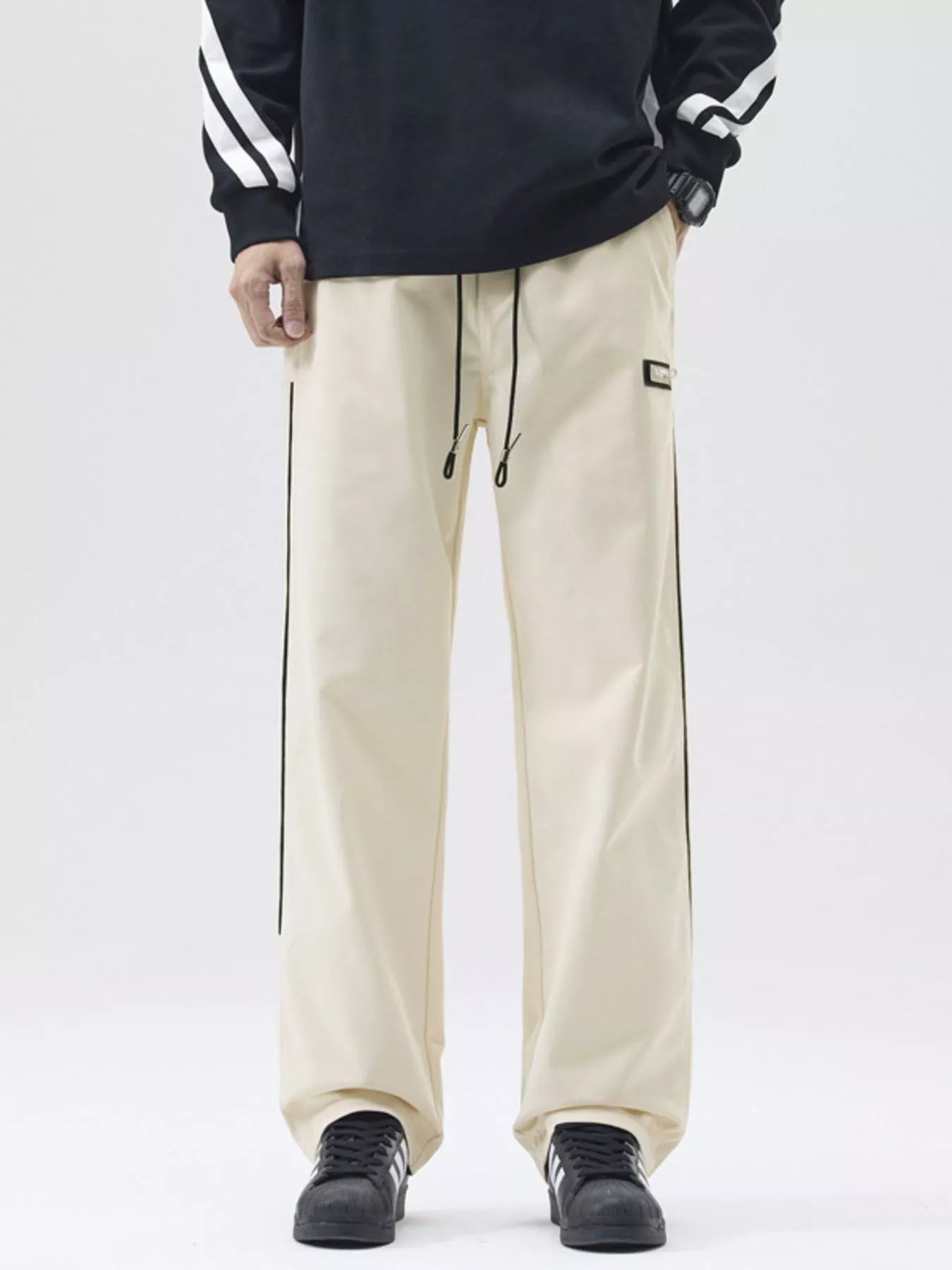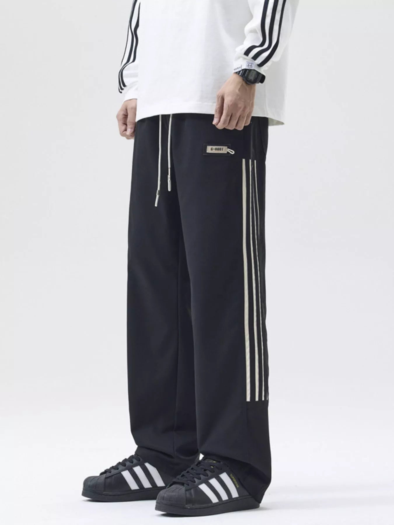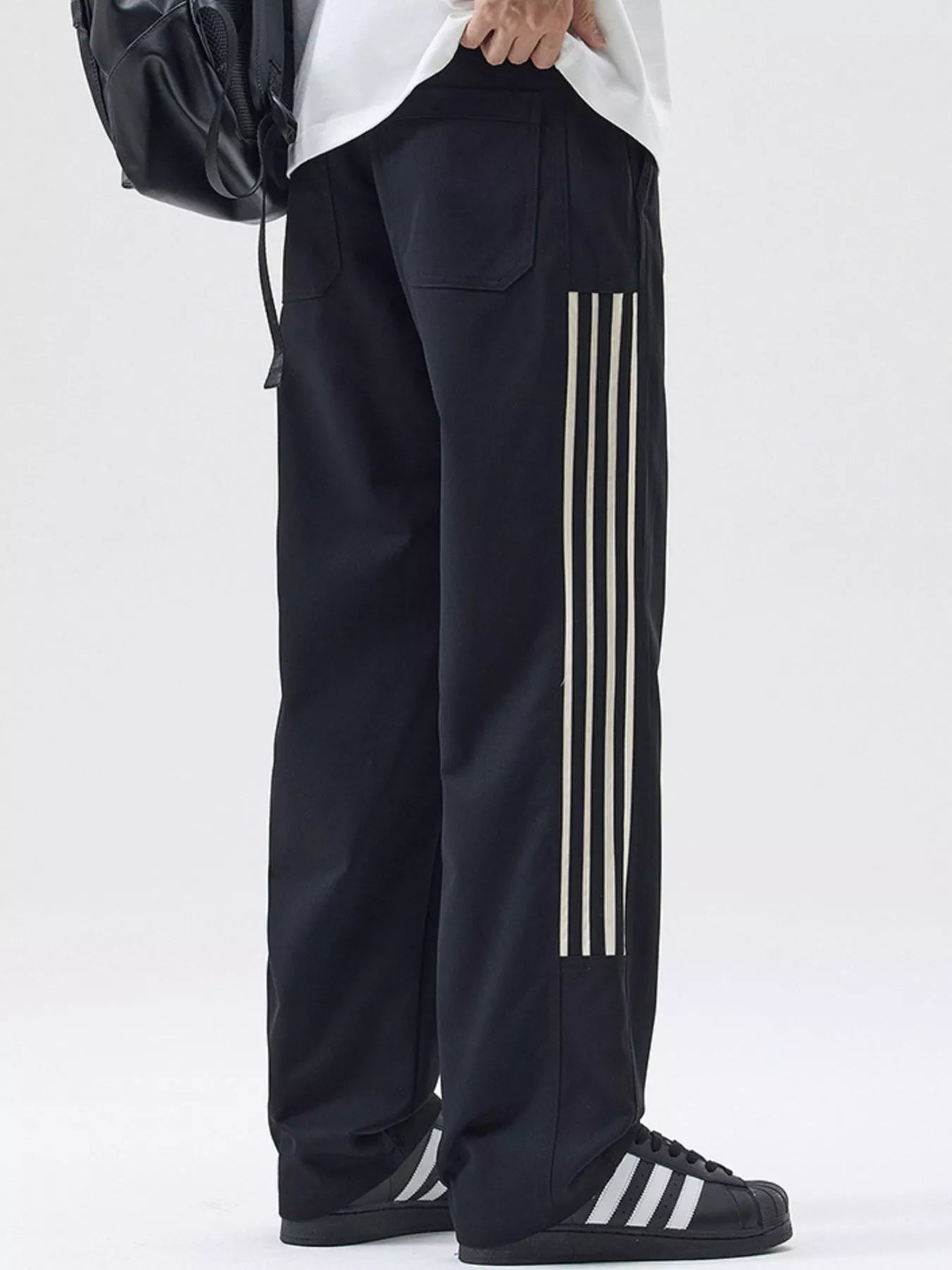 NEWYORKLISTED ATLAS MEN's COLLECTION: Men's Full Size Side Striped Wide Leg Casual Pants Plus Size