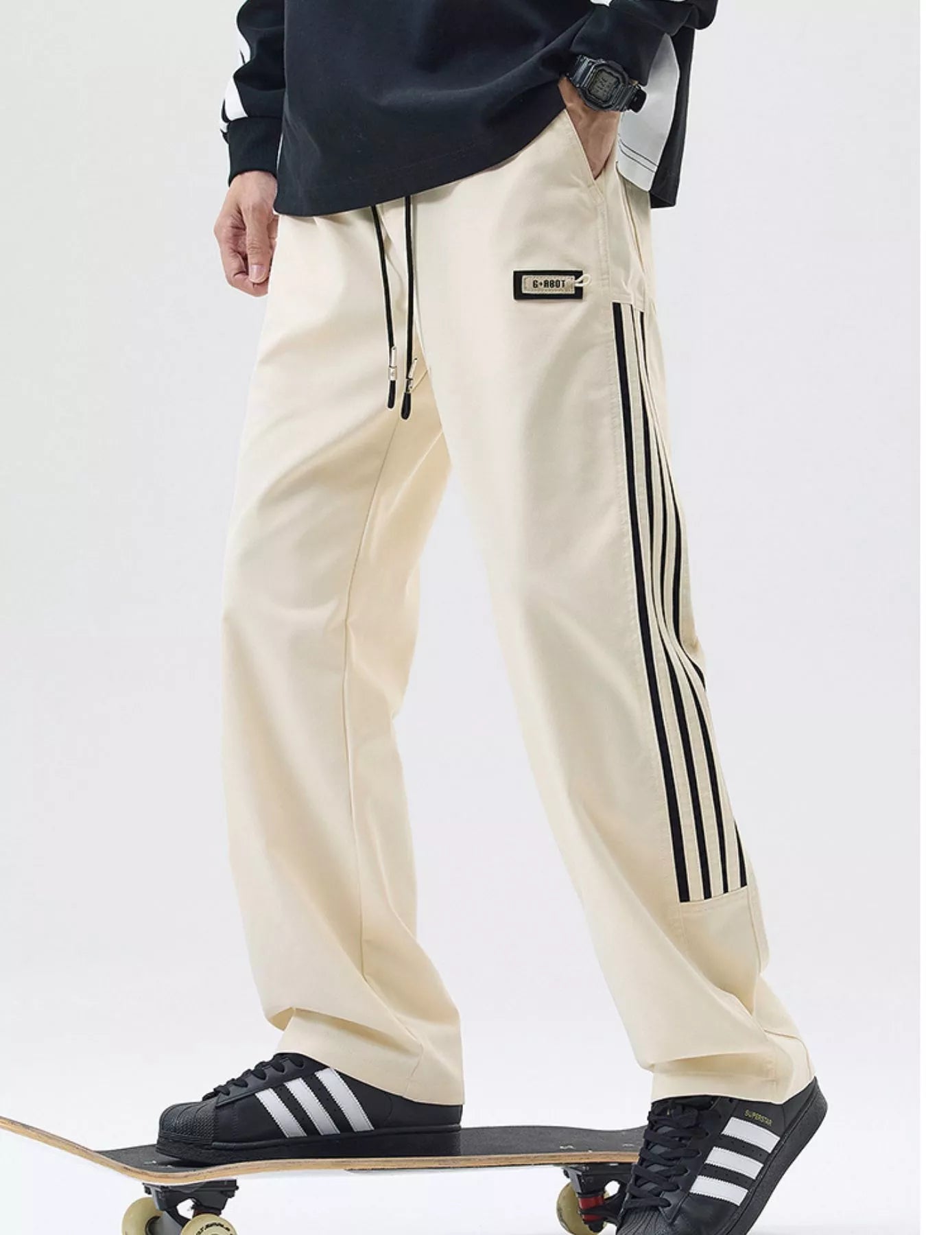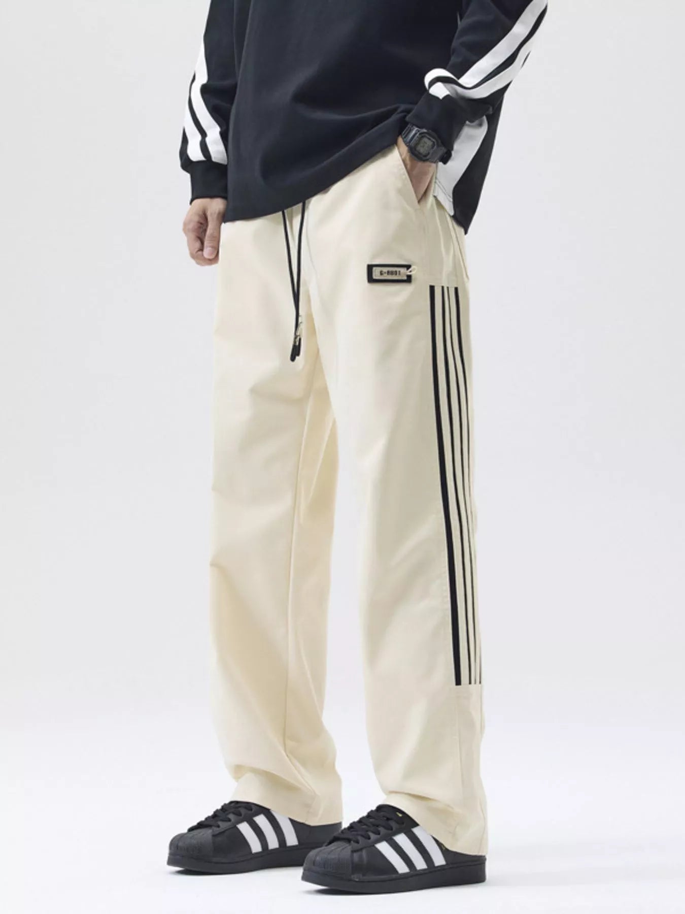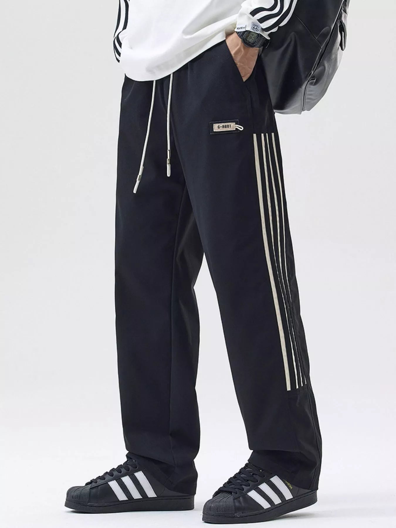 NEWYORKLISTED ATLAS MEN's COLLECTION: Men's Full Size Side Striped Wide Leg Casual Pants Plus Size