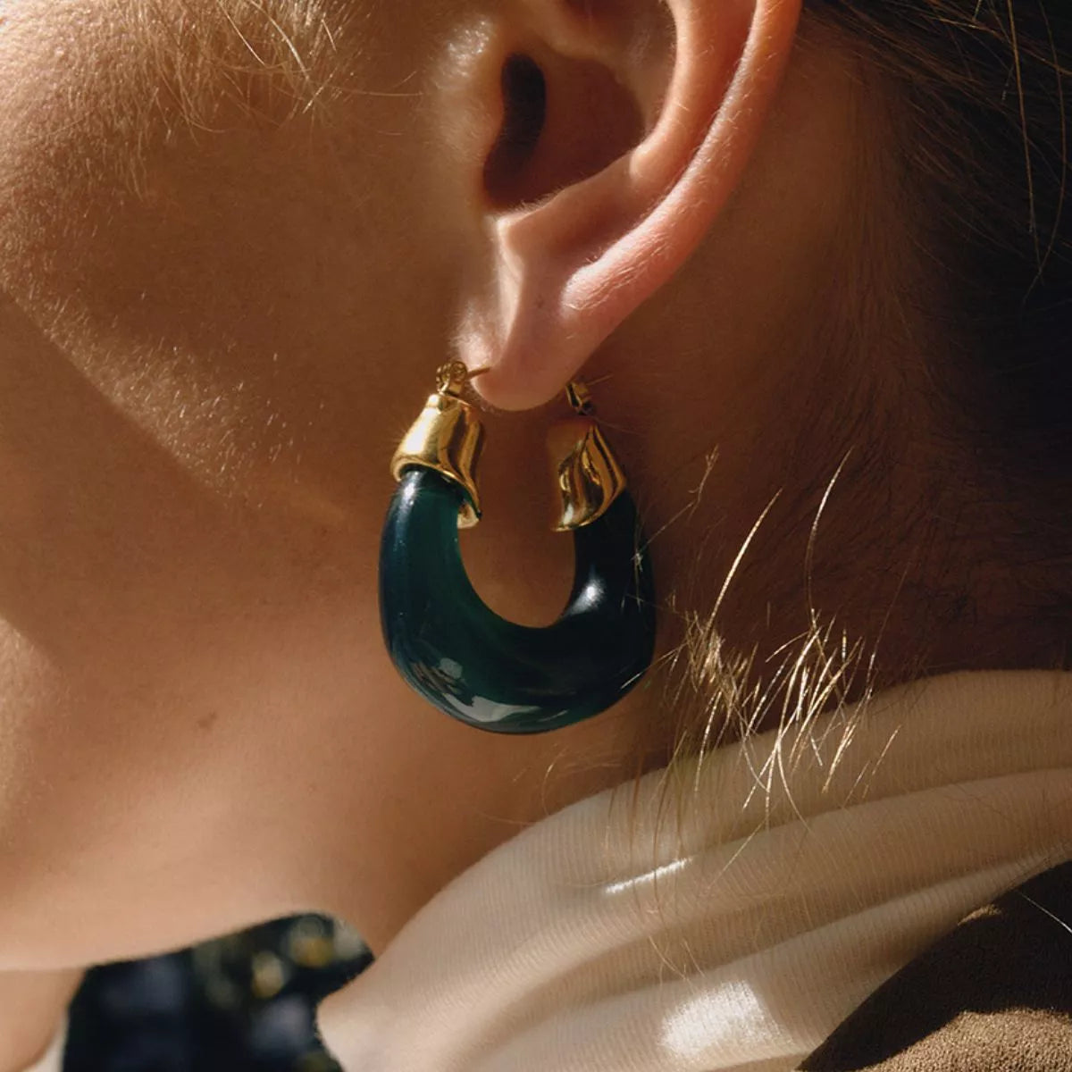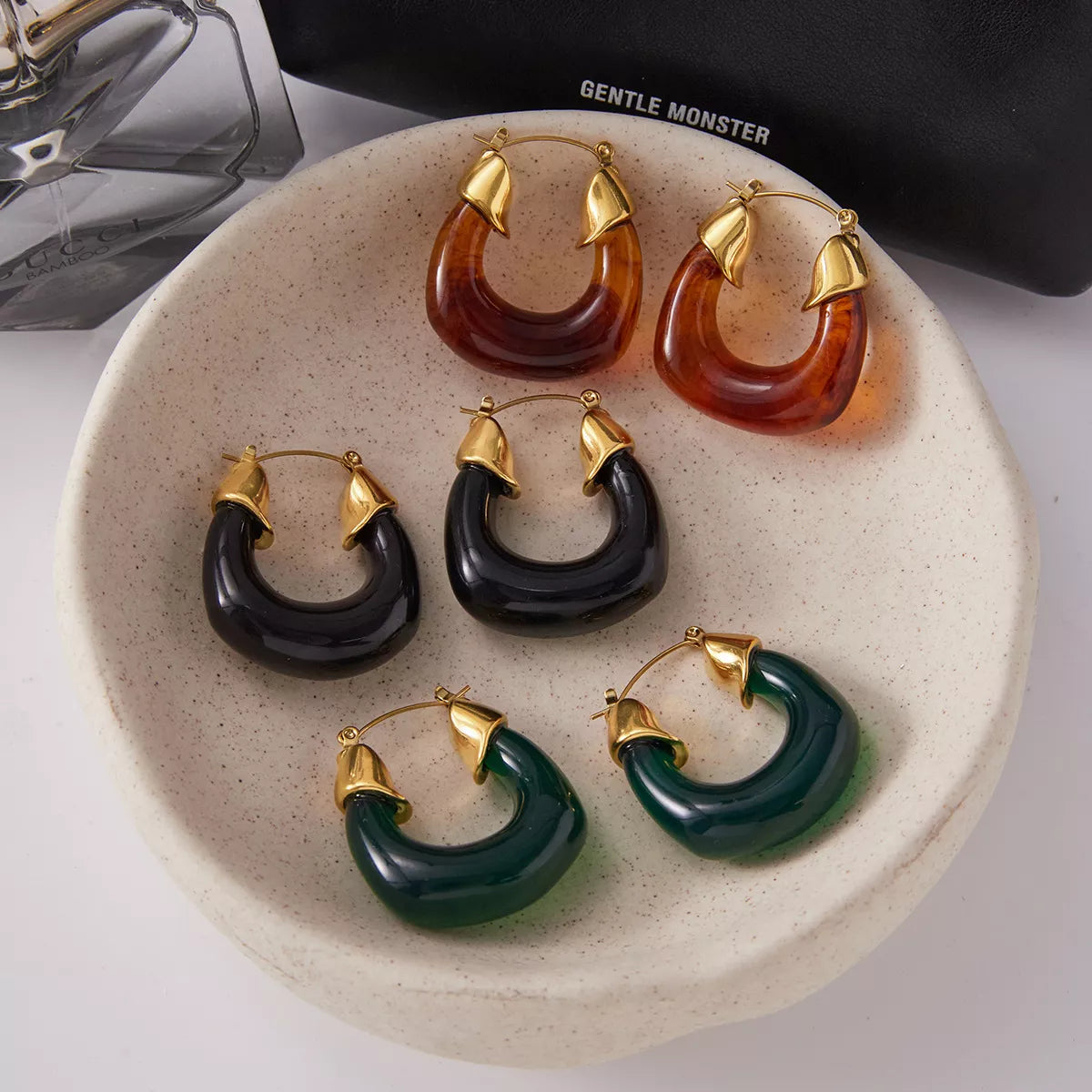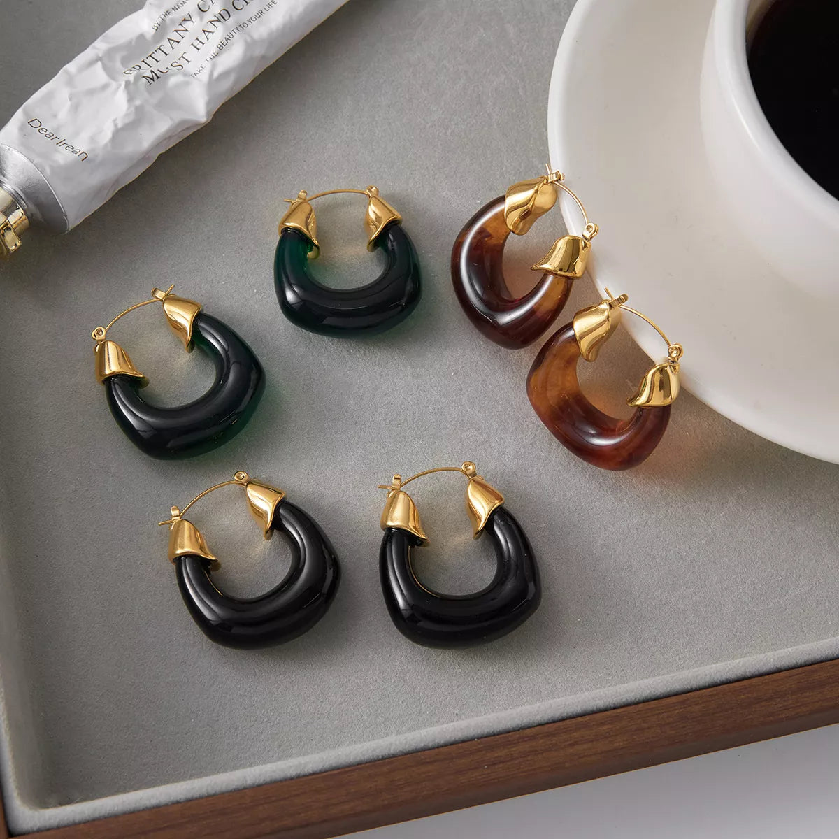 Resin Hoop Earrings with Gold Accents