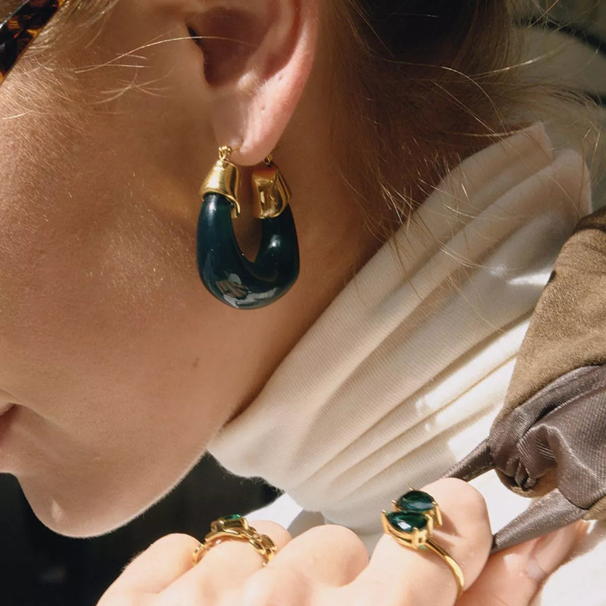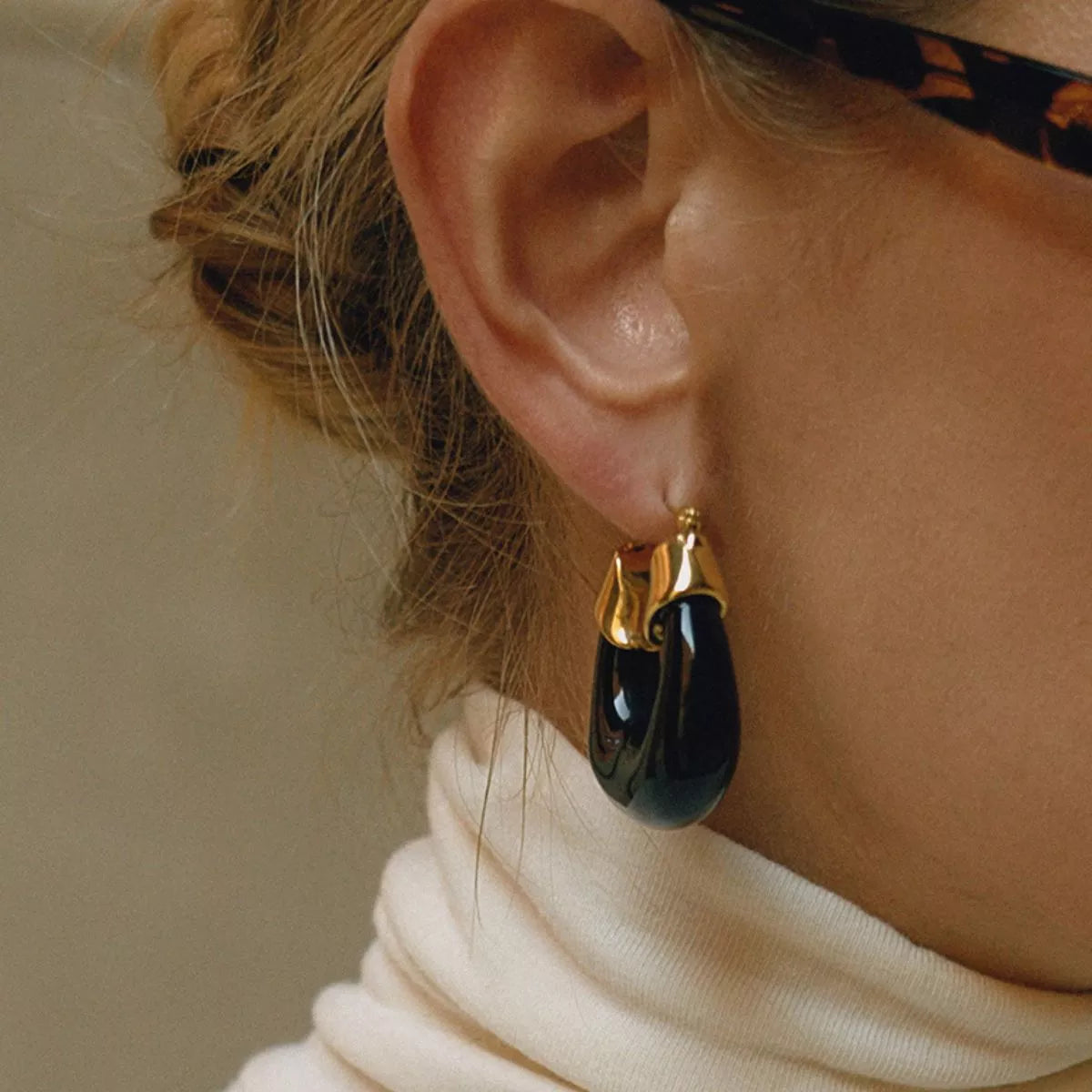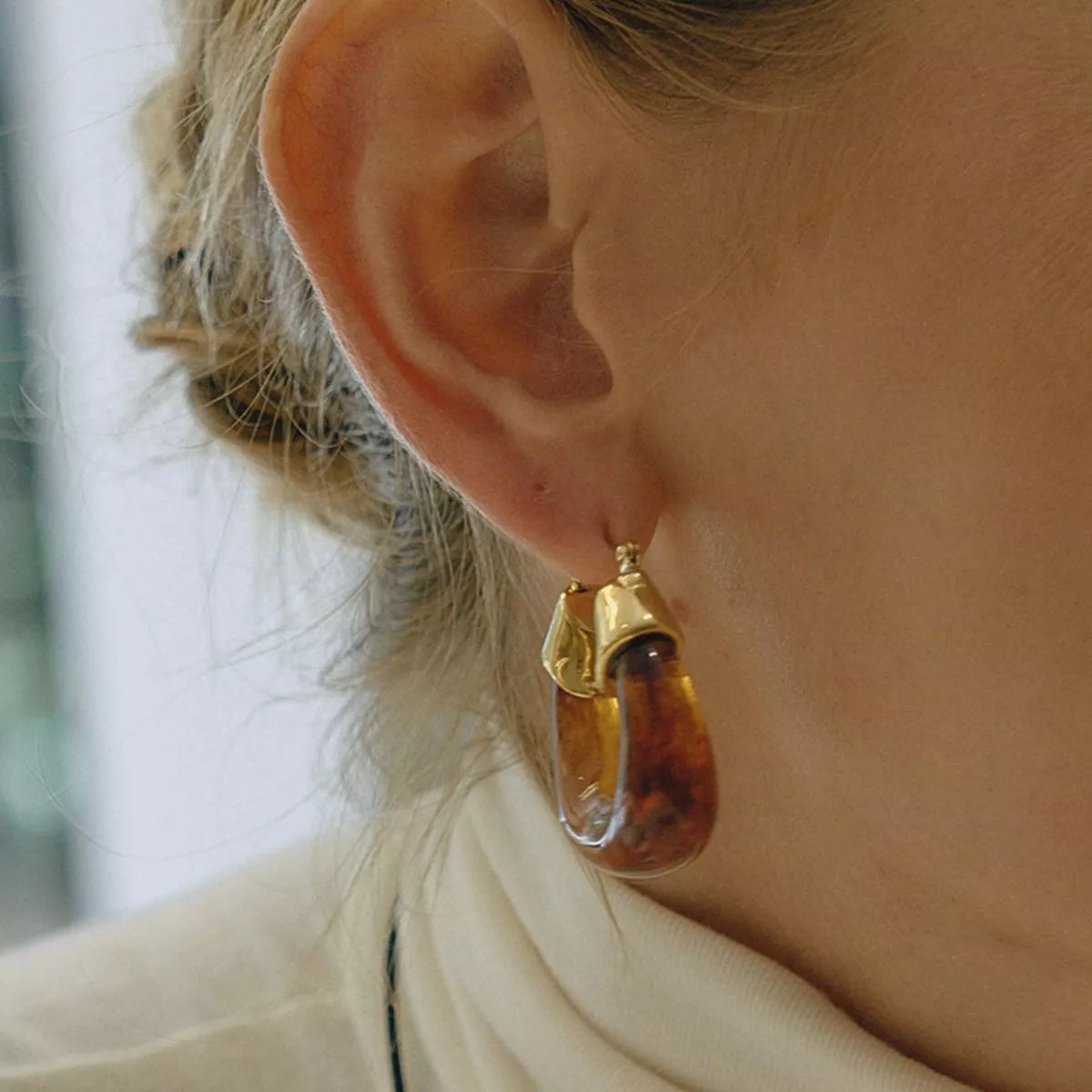 Resin Hoop Earrings with Gold Accents