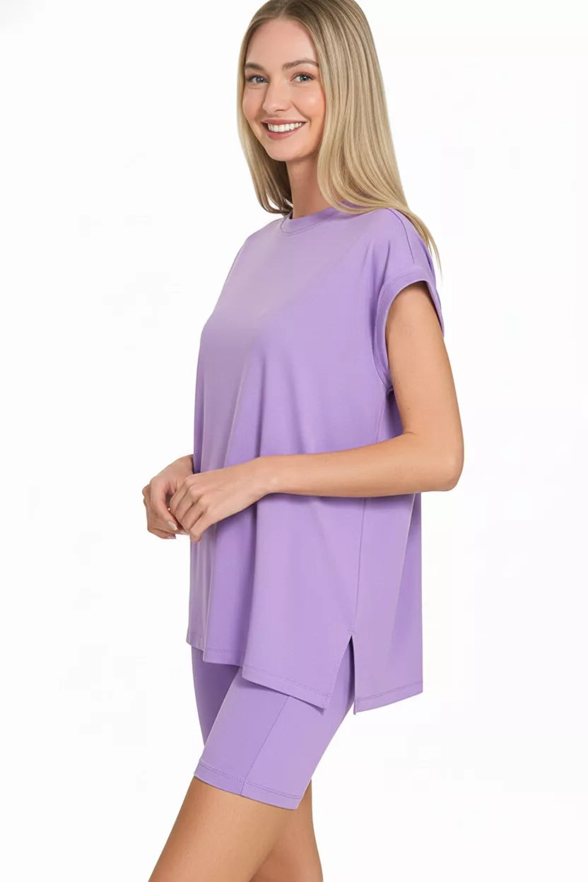 Zenana Brushed Dty Microfiber Top & Biker Shorts